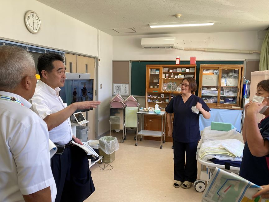 三島村硫黄島では、診療所等の公的機関への訪問の他、有人国境離島法に基づく交付金を活用した雇用機会創出等の取組を視察しました。